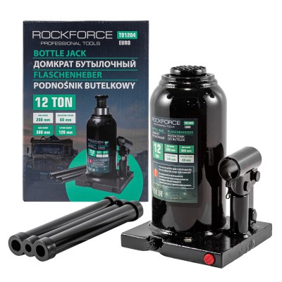 Домкрат бутылочный 12т с клапаном (высота подхвата – 200мм, высота подъема – 380мм, ход штока – 120мм) RF-T91204(Euro)