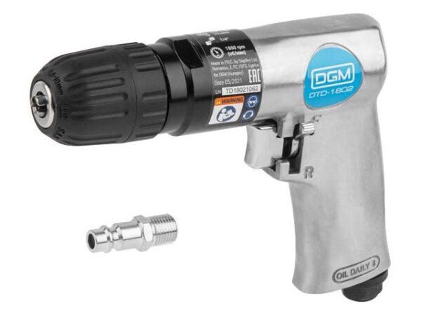 Пневмодрель с реверсом DGM DTD-1802 (Быстрозажим.патрон 3/8”-24 UNF, 255 л/мин, 1800 об/мин, дерево/металл: 20/10 мм;) (DTD-1802)